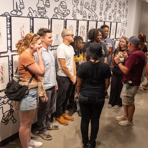 9 3/4" x 12 1/4" marker drawing on paper from the exhibtion "Alex Schubert: Playset" at Webster University's Kooyumjian Gallery.